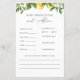Cartão de conselhos e previsões de chás de fraldas com ramificações de limões de aquarelas. Uma maneira divertida de interagir com os convidados durante o seu chá de fraldas. Coleção de Correspondência no Compro Adore Paper Co Zazzle.
