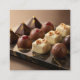 Black Script Chocolatier Brand Event QR Code Calling Card design featuring elegant chocolate imagery and a built-in QR code. Ideal for chocolatiers and gourmet chocolate brands to share contact details and promotions at fairs and industry events.
