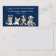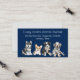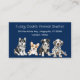 Cartão de visita com cães design, e tema animal, em cor azul marinho escuro. Texto é cinza leve, para personalizar em dois lugares. Quatro filhotes sentam-se ao longo do fundo dos cartões horizontais e incluem, Rouco / Malamute, Corgi, Border Collie e raças Dalmation. A parte traseira das placas é uma cinza sólida.