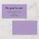 Make IRL dating fun with these cute dating cards! When you meet someone that you hope to see again, avoid the awkward, "are you single and can I have your number" conversation by sharing your personalized Classic Cutie cards. It's a simple way to say, "I'm interested" and provide an opening for your connection to contact you.