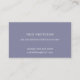 Fundo azul empoeirado com nome escrito à mão no lado frontal e informações profissionais adicionais no verso.