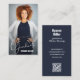 Conecte-se com esses cartões de chamada com formando apresentando sua foto na frente e seus detalhes em caracteres quicos e um Código QR para direcionar ao seu site, contas de mídia social ou retomar no verso. Altere a cor no verso com o botão "Editar usando ferramentas de Design". Personalize para ser exclusivamente seu.