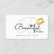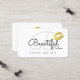 A simplicidade de um cartão de contato branco elegante, delicado e feminino com lábios de ouro falsos, e com campos para nome e inicial (script Sacramento font-style), profissão, nome comercial e informações adicionais (endereço, telefone e email)... ideais para salões de beleza, maquiagem, suprimentos de cosmetologia...