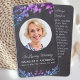 Compartimento Russo Eucalyptus Simpatia Cartões Funerais De Oração. Esta carta de oração comemorativa rustica, mas elegante, apresenta um verde azul roxo, cor-de-rosa, eucalipto, na design de ardósia do quadro. Frente "In Loving Memory" Personalize este cartão de oração do funeral memorial com a foto, o nome e as datas de seus entes queridos e o sentimento. Volte ~ 'Que você sempre caminhe ao sol' Poema, que pode ser personalizado, por favor, alcance se você quiser uma design com um poema específico que não seja. Este cartão de oração memorável será um guardião precioso, para os serviços funerários e para a celebração da vida. COPYRIGHT © 2020 Judy Burrows, Black Dog Art - Todos Os Direitos Reservados. Folhagem Russa Memorial Fotografia Funeral Cartão de Oração Funeral