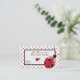 mamãe vermelha e branca Na moda reproduz data / cartão de chamada, com uma área de texto branca, no meio. Gráficos de duas joias vermelhas e pretas decoram a placa. Personalize o texto vermelho e preto para você mesmo ou como uma ideia de presente de excelente para qualquer mãe ou mãe.