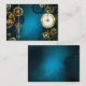 Turquesa, texturizada, fundo steampunk com latão e engrenagens douradas, chave prateada e relógio. Estilo Steampunk.