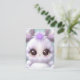 O gráfico do belo coelho bebê é rodeado por pestanas brancas e roxas sobre fundo pétalo.