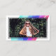 cartão de visita de mídia social encantadora com espaço para duas fotos suas ou para seus quadros simples desenhados à mão com dentro de logotipo sobre listras de aquarela sujas em cores brilhantes de rosa, violeta, azul e turquesa. Os ícones das mídias sociais estão rabiscados para uma impressão pessoal. Adicione seu nome em um script de pincel e suas redes sociais lidam com uma fonte encantadora escrita à mão.
