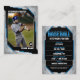 Mostre seu amor pelo jogo com este na moda e um cartão de troca personalizável de baseball. Apresentando um design ousado e moderno com um elegante esquema de cores preto e azul, este cartão é perfeito para honrar o seu jogador favorito. Adicione facilmente sua própria foto, nome do jogador, nome do grupo e estatísticas para um toque personalizado.
