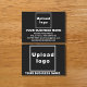 Cartão de chamada que você pode personalizar para colocar seu nome comercial e outras informações de sua empresa. Você pode usá-lo como material de marketing para anunciar sua empresa ou para promover seu nome de marca a clientes ou clientes. Cartão de chamada personalizável que você pode usar para criar reconhecimento de nome de marca. Pode também utilizá-lo como acessório do seu material de embalagem do produto ou como folheto informativo. As cores e formas de design são textos brancos sobre fundo preto e forma retangular de formato paisagem. Para personalizar este cartão de chamada, carregue o logotipo da sua empresa, digite seu nome, endereço, número de telefone, e-mail e site ou página de mídia social. Após carregar os textos de logotipo e digitação, verifique a aparência nos lados frontal e traseiro. Se a aparência lhe agrada, você pode colocar seu pedido agora. Se você precisar redimensionar e mover o logotipo e as mensagens para o ajustado nesta placa chamadora, mude a ferramenta design. Você também pode fazer outras alterações na ferramenta design de acordo com a aparência desta chamada de cartão que você prefere, como alterar a cor do plano de fundo, a cor da fonte e o estilo da fonte.