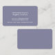 Um cartão de contato azul, simples e elegante. Seu nome (estilo serif) e informações adicionais todas impressas na frente...