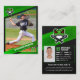 Mostre seu jogador de beisebol favorito com este cartão de troca elegante e na moda. Com um esquema ousado de cor verde e preto, um clássico layout de cartão de baseball e um design profissional, este cartão é perfeito para qualquer entusiasta do beisebol.