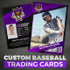 Mostre seu jogador de beisebol favorito com este cartão de troca elegante e na moda. Com um esquema arrojado de cor roxa e preta, um esquema clássico de cartão de baseball e um design profissional, este cartão é perfeito para qualquer entusiasta do beisebol.