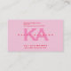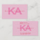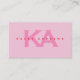 Um design minimalista monograma rosa e vermelho. Ele é legendado com nome, endereço, telefone e e-mail.