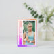 Comemore seu torneio de tênis duplica os resultados com este cartão de troca personalizado. Carregue as suas próprias fotos de tênis player na frente e atrás, e edite o texto para inserir seu nome e também o nome da sua equipe de tênis duplas, como Simpson/Johnson, por exemplo. Você também pode editar o texto para inserir o nome do torneio de tênis, bem como o registro de vitórias/perdas e o local em que terminou. A parte frontal da borda da placa está deslumbrante, roxo/raios vermelhos. A parte traseira da placa tem um fundo tênis azul com bolas de tênis e uma raquete tênis.