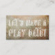 Preenchendo a maior parte da frente deste cartão, em uma fonte preta, aberta, desajeitada e lúdica, uma camada gráfica de tipografia diz "o Vamos tem uma data de jogo!" O fundo de ambos os lados foi coberto por uma imagem gráfica de fundo, crua, angustiada e rústica, em tons de laranja e castanho. Os campos de modelo foram configurados para seus detalhes pessoais no verso, usando uma fonte sans-serif de todos os bonés agradável. Você pode alterar a fonte, bem como os tamanhos das palavras, se desejar... basta clicar para obter mais personalização para acessar os campos de edição. Todos os detalhes foram adicionados separadamente e deixados desbloqueados para lhe dar o máximo controle de design. Por favor, não hesite em contactar se precisar de assistência. 21 //