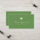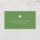 A simplicidade de um cartão de contato verde elegante com um coração pequeno e com campos de nome (ou nome comercial), profissão e informações adicionais (endereço, número de telefone e correio eletrônico)...