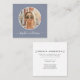 Moderno e chique, este simples cartão de visita minimalista / cartão de chamada mostra sua foto em um círculo no estilo Instagram em um cenário azul tendencioso, junto com seu nome na caligrafia de script manuscrito. Na parte de trás há muito espaço para os identificadores de mídias sociais e qualquer outra informação de contato.