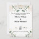 Celebre seu dia especial com este convite de casamento floral. Apresentando delicadas rosas brancas de aquarela, plasmas de ouro macio e folhagem verde fresca, este convite oferece uma combinação perfeita de elegância e charme. A tipografia limpa e o layout moderno destacam os nomes dos casais enquanto oferecem uma exibição clara da data, hora e local do casamento.