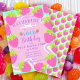 Cartão de Convite Azul Cor-de-Rosa de Morango