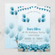 Seu convite de aniversário azul moderno apresenta balões festivos, bandeirolas, caixas de presente com laços e linhas limpas em um fundo azul claro—ideal para um clima de festa contemporâneo.