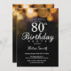 Cartão De Convite De Aniversário De 80 De Literatura Dourado. Aniversário Adulto. Dourado Fundo Do Bokeh. 16º 18º 80 21 30 40º 50º rua 100º 70. Qualquer Idade.