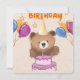Este cartão de convite é perfeito para festas de aniversário, com ursinho de pelúcia, com bolo e balões coloridos.