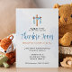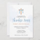 Celebre a ocasião especial do batismo do seu menino com nosso cartão de convite elegante e personalizável. O design apresenta um fundo azul sereno em aquarela, adornado com uma cruz simples, porém graciosa, incorporando um toque suave e sincero. O estilo minimalista garante um apelo atemporal, perfeito para comemorar este evento sagrado. Personalize facilmente os detalhes para criar um convite único e memorável para seus convidados queridos.