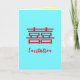 Cartão de casamento chinês com um toque moderno. O caractere chinês de dupla felicidade no convite significa a união feliz do casal de noivos.