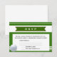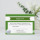 Convite de RSVP de casamento com um tema de golfe em verde e branco simples com uma bola de golfe. Este cartão de RSVP tem um convite de casamento correspondente: