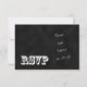 Este estilo divertido de quadro de discussão RSVP apresenta a palavra RSVP na parte inferior esquerda e um lugar para você personalizar o design com seus nomes e data em uma apresentação em um quadro. O lado inverso é para os detalhes da resposta RSVP. Direitos autorais