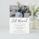 Celebre o novo Sr. e Sra. com este adorável e elegante anúncio de fuga e convite! Este design apresenta um espaço para você incluir uma foto do seu casamento e uma fonte escrita à mão rústica! Altere facilmente todos os detalhes para o seu evento ou anúncio!