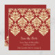 Cartão de convite de casamento para guardar a data branco simples elegante indiano asiático sul-asiático damasco vermelho
