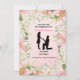 Belo cartão de convite para noivados com fundo rosa macio, decorado com delicadas flores rosa. Apresenta uma foto sincera de um homem propondo a uma mulher, capturando a alegria do momento especial. Perfeito por anunciar sua noivado de forma romântica e elegante.