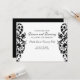 Cartão de Recepção de Casamento Preto com Damasko Elegante. Este cartão pode ser usado como um cartão de direções ou anexo nos convites de casamento. Como cartão anexo, pode incluir informações sobre acomodações de hotel, atividades agendadas, listas de presentes, sites de casamento e outros detalhes sobre o seu evento. Convites com damasco preto combinando, cartões de RSVP, programas de casamento, selos de envelope e selos postais disponíveis em nossa loja em www.celebrateitweddings.com