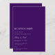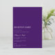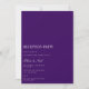 Este cartão de convite de recepção branco e roxo de script elegante apresenta um script moderno e texto limpo para um design roxo simples e na moda que você irá adorar. Adicione texto personalizado para fornecer qualquer informação adicional necessária para seus convidados. Sinta-se à vontade para me enviar mensagens com qualquer pergunta relacionada a design - terei todo o prazer em ajudar!