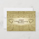 Um design de imagens Digitalbcon com um tema de cor dourada com uma variedade de imagens personalizadas, formas, padrões, estilos e fontes neste cartão de convite de resposta para aniversário de casamento dourado único. Este cartão de convite colorido vem completo com um design complementar no verso com letras de texto personalizadas para se adequar à sua ocasião especial.