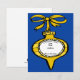 Convide a sua família e amigos para a sua festa de Natal com este ornamento de ouro com um cartão azul de convite que diz: "Felicidades de Natal". Personalize facilmente a placa adicionando a data, a hora, o endereço e o número de telefone.
