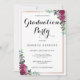 Cartão de convite floral de festa de formatura burgundy. Convite para caligrafia com uma elegante estrutura floral e um padrão de bolinhas no dorso (amovível).
