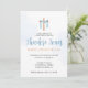 Celebre a ocasião especial do batismo do seu bebê com o nosso cartão de convite elegante e personalizável. O design apresenta um fundo azul de sereno aquarela, adornado com uma cruz simples mas graciosa, incorporando um toque suave e sincero. O estilo minimalista garante um apelo eterno, perfeito para comemorar este evento sagrado. Personalize facilmente os detalhes para criar um convite exclusivo e memorável para seus queridos convidados.
