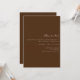 Este elegante cartão de convite para casamento branco e castanho apresenta um roteiro moderno e texto limpo para um design simples e marrom na moda que você vai adorar. Adicione texto personalizado para fornecer qualquer informação adicional necessária para seus convidados. Sinta-se à vontade para me enviar mensagens com qualquer pergunta relacionada a design - terei todo o prazer em ajudar!