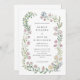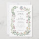 Este vibrante convite de casamento mostra uma fronteira de flores silvestres amarradas com fita azul. Uma borboleta e uma pequena lagarta adicionam um toque de choradeira. É perfeito para casais que dizem "eu faço" na natureza.