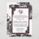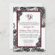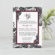Lace preto elegante sobre fundo branco com monograma e cartão de convite para casamento formal de contraste de vinho.
