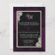 Lace preto e branco elegante sobre fundo de ameixa roxa com monograma e cartão de convite formal de contraste branco.