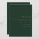 Este elegante guião dourado e carta de convite para casamento verde florestal apresenta um guião moderno e texto limpo para um design verde de floresta simples e na moda que irá adorar. Adicione texto personalizado para fornecer qualquer informação adicional necessária para seus convidados. Sinta-se à vontade para me enviar mensagens com qualquer pergunta relacionada a design - terei todo o prazer em ajudar!
