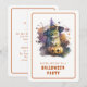 Encontre a festa perfeita do Dia das Bruxas com um design de aquarela impressionante que apresenta um gato com um chapéu mágico e uma abóbora esculpida. Torne a sua celebração do Dia das Bruxas inesquecível com estas decorações únicas e visualmente atraentes. Belo cartão de convite para festas de Halloween.