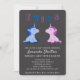 Cartão de convite para chá de bebê personalizável com tema de unicórnio bebê fofo. Convites modernos de gêmeos unicórnio menino e menina para sua família e amigos. O design tem dois pequenos unicórnios, um azul para menino e um rosa para menina. O fundo é preto, mas você pode alterá-lo personalizando o convite.