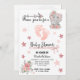 Cartão de convite para chás de latão - Elefante de bebê, rosas e estrelas motif