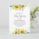 Cartão de convite para chá de fraldas decorado com girassóis de cor d'água.