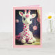 Uma girafa branca e rosa doce está na frente deste Convite para Chás de fraldas. Abra o cartão e há outra girafa bonita com sua mensagem de convite para fins de referência. Este é um cartão personalizado e os compradores são recomendados a personalizá-lo com as ferramentas de personalização fáceis de usar da Zazzle. Adoramos criar cartas e convites para bebês. Eles são o futuro. Este cartão também pode ser personalizado como um anúncio ou primeiro cartão de aniversário.